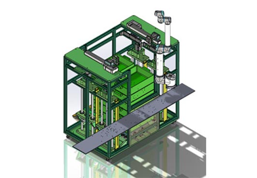 針對(duì)設(shè)備機(jī)臺(tái)的上下料需求,研發(fā)設(shè)計(jì)了面向小型零部件的,基于市場標(biāo)準(zhǔn)料箱的自動(dòng)上料箱系統(tǒng)。